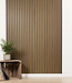 Met de stijlvolle, hoogwaardige wandpanelen uit de Wallcompany Luxury Collection maak je jouw woning uniek. Dit exclusieve wandpaneel heeft een houtmotief op de latjes en een glanzende, bronzen ruimte tussen de latjes.